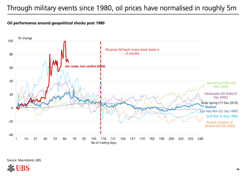 Absent progress toward normalizing energy flows via the Strait of Hormuz within the next week or two, UBS warns the market risks a significant spike in oil and LNG prices, with longer disruption into May breaching recent highs of ~$120/bbl for front month and ~$150/bbl for Dated Brent.